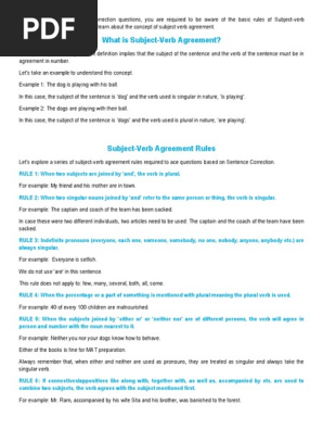 30 Rules Of Subject Verb Agreement And Their Examples Pdf